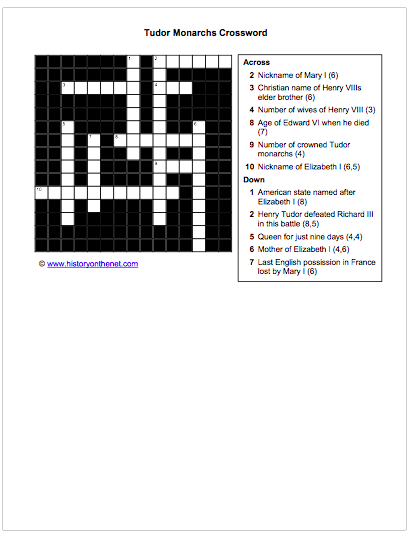 A crossword with clues relating to the lives and times of the Tudor monarchs.