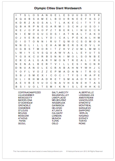 Olympic Cities Wordsearch