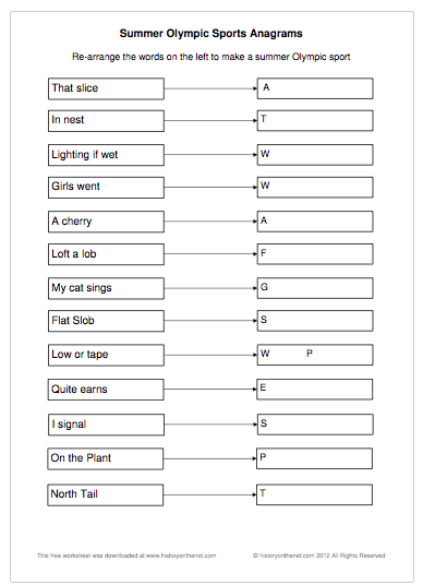 Summer Olympic Sports Anagrams