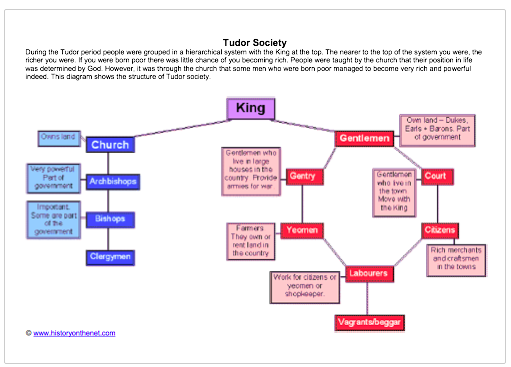 An information sheet with diagram and information about the structure of Tudor society.