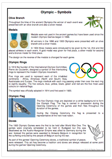 A two-page information sheet giving information about Olympic symbols.